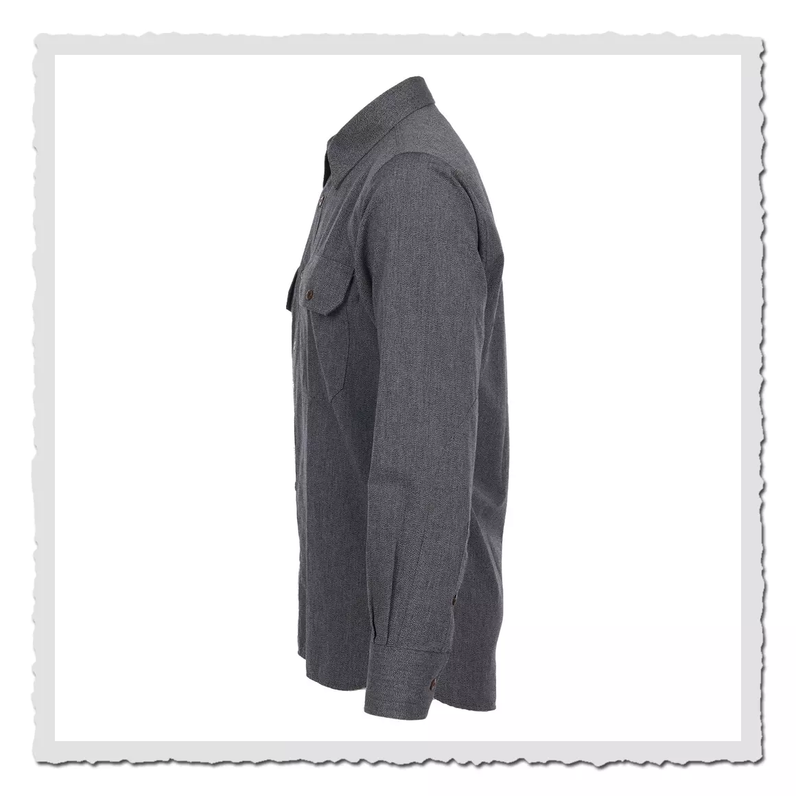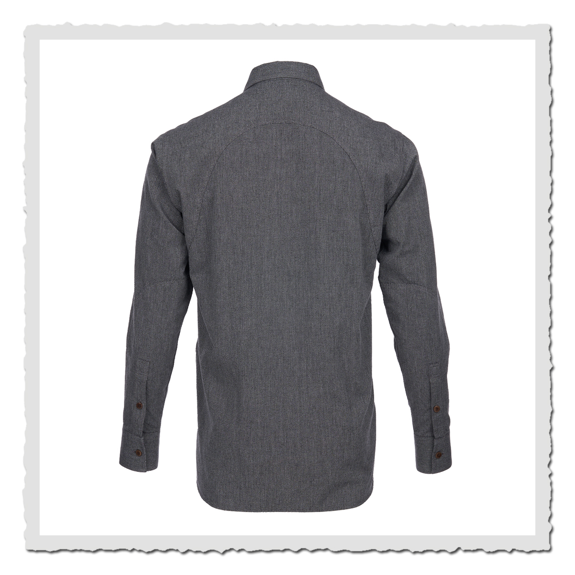 Als Stoff hat Pike Brothers einen Stoff gewählt, welcher mit einem Melange-Garn gewebt wurde. Daher ergibt sich der typische Salt`t`Pepper Effekt, was ebenfalls typisch für Arbeitshemden der damaligen Zeit ist.