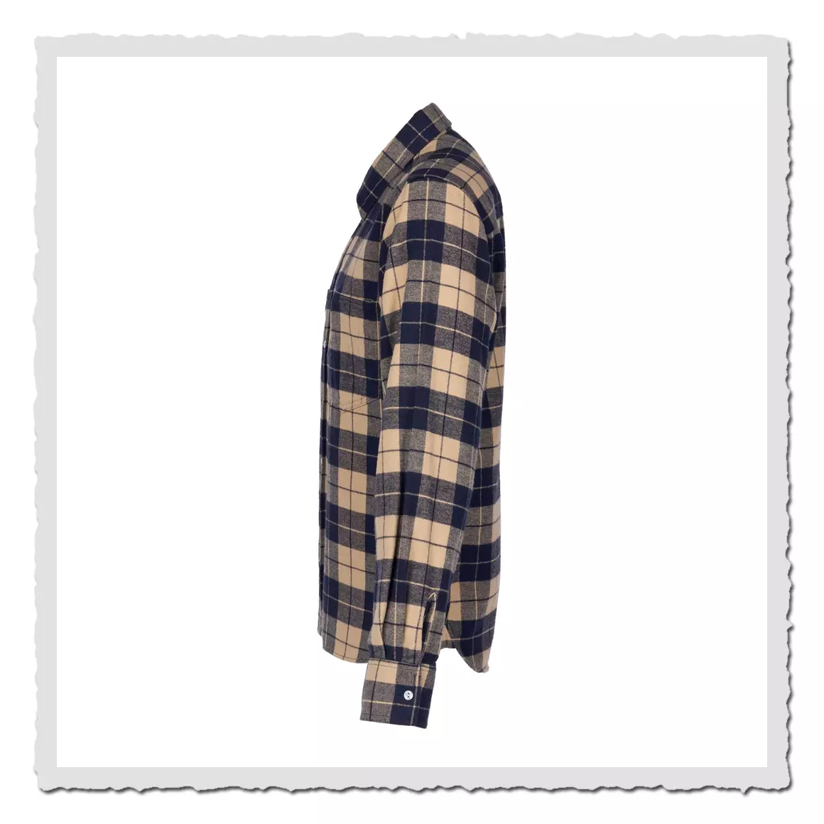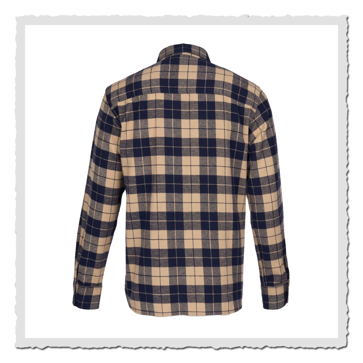 Das 1937 Roamer Shirt in blue flannel basiert auf einem amerikanischen Arbeiter-Hemd der späten 30er Jahre. Wie auch das Original, bietet es dem Träger einen hohen Komfort durch den geräumigen Schnitt. Ein weiteres Detail des 1937 Roamer Shirts ist die „Rauchertasche“. In der ersten Hälfte des 20. Jahrhunderts war Rauchen noch salonfähig und man versuchte Rauchern generell das Leben leichter zu machen. So auch bei der Arbeitsbekleidung. Die Rauchertasche hier ist so geschnitten, dass man ein Softpack darin verstauen kann. Verspürt der Besitzer nun Lust auf eine „Kippe“, ist er in der Lage eine Zigarette aus seinem Softpack zu entnehmen, ohne die ganze Schachtel heraus ziehen zu müssen.