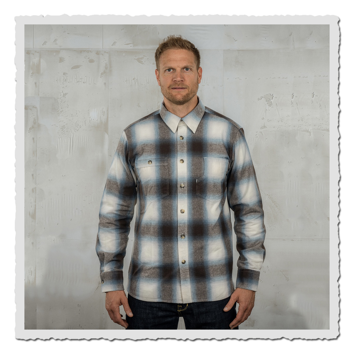 Das 1937 Roamer Shirt basiert auf einem amerikanischen Arbeitshemd der späten 30er Jahre. Wie auch das Original bietet es dem Träger einen hohen Komfort durch den geräumigen Schnitt. Ein weiteres Detail des 1937 Roamer Shirts ist die „Rauchertasche“. In der ersten Hälfte des 20. Jahrhunderts war Rauchen noch salonfähig und man versuchte Rauchern generell das Leben leichter zu machen. So auch bei der Arbeitsbekleidung. Die Rauchertasche ist so geschnitten, dass man ein Softpack darin verstauen kann. Verspürt der Besitzer nun Lust auf eine „Kippe“, ist er in der Lage eine Zigarette aus seinem Softpack zu entnehmen, ohne die ganze Schachtel heraus ziehen zu müssen.