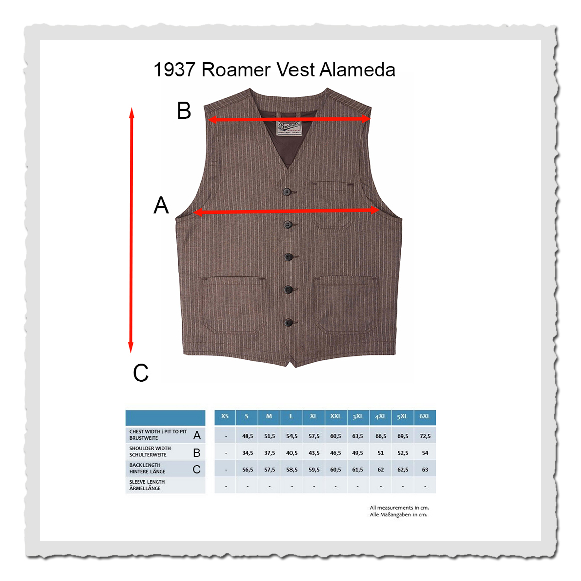 Die Pike Brothers 1937 Roamer Vest Alameda wird aus leichten Baumwoll/Leinen-Stoff gefertigt.