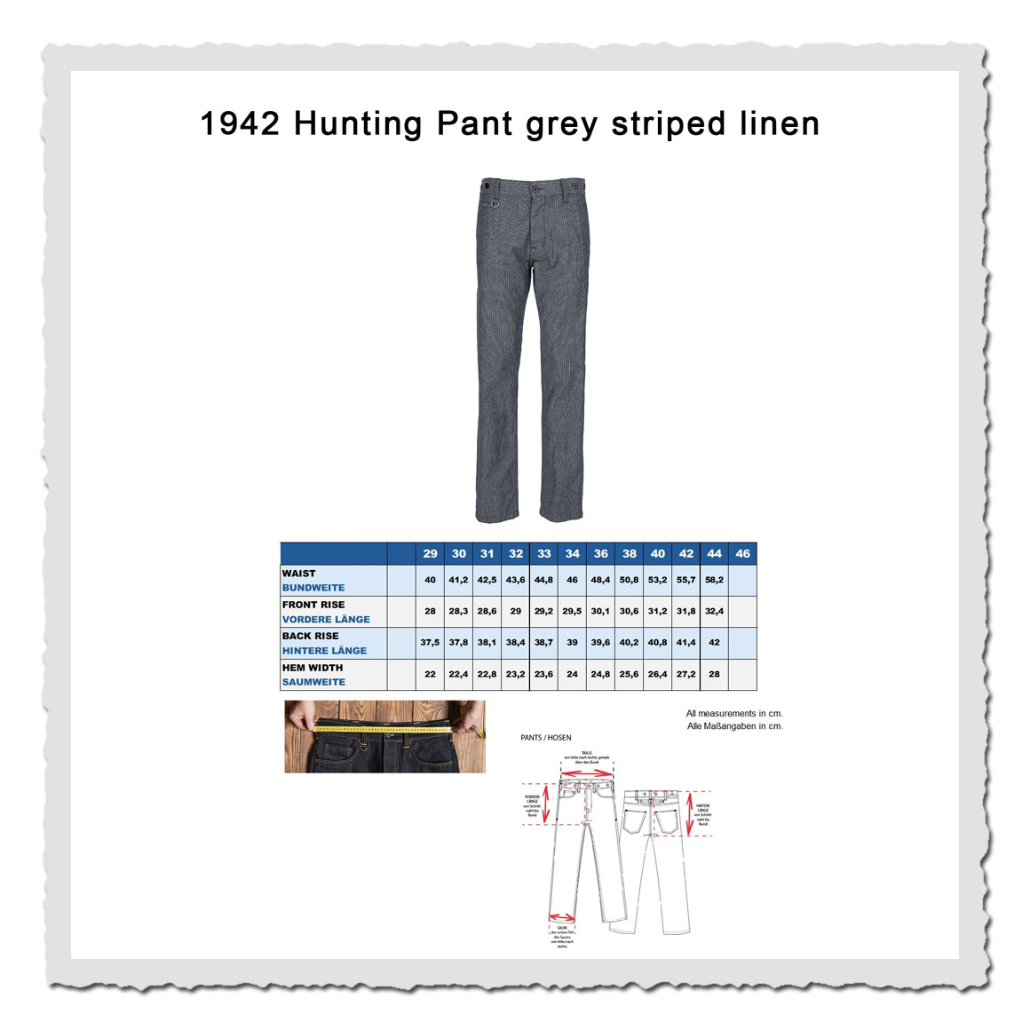 Folgende weitere Details kennzeichen die 1942 Hunting Pant grey striped linen