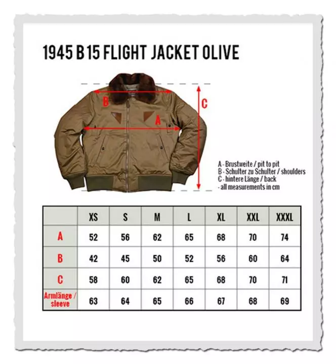 Die U.S. Army Air Force B15 Flight Jacket wurde so um 1944/1945 herum eingeführt. Sie ist der Nachfolger der legendären B10 Flight Jacket und somit die Weiterentwicklung dieser. Die B15 (wie diese aus Baumwolle-Stoff) ist die Mutter aller modernen Fliegerjacken. Sie wird -nun in verschiedenen Nylonversionen- bis zum heutigen Tag gefertigt.