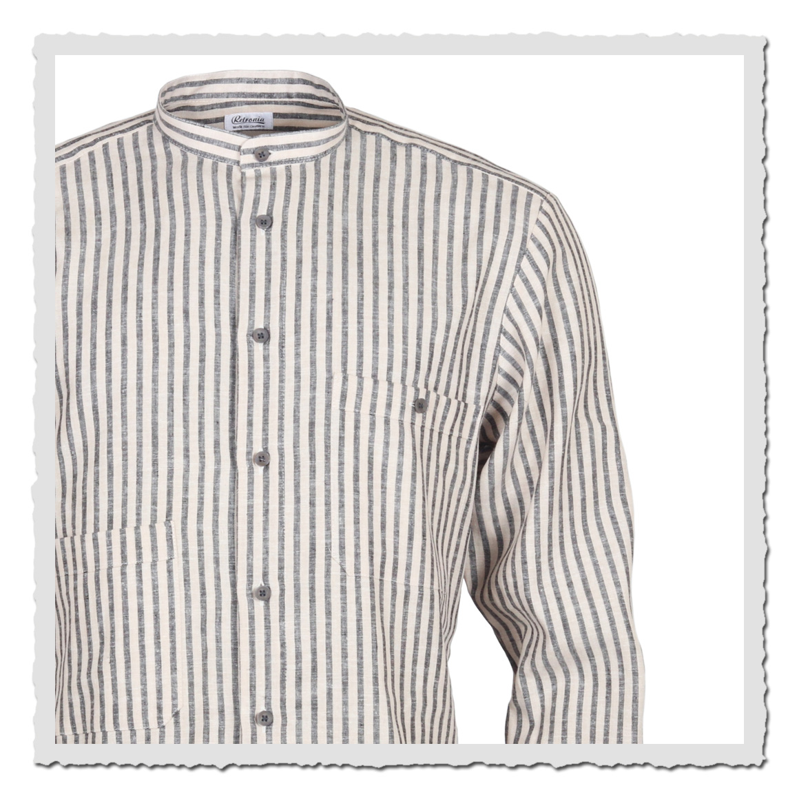 Das Retronia Arbeiterhemd Fritze wurde anhand alter Vorlagen auf heutige Konfektions-Bedürfnisse geschnitten. Im Brustbereich sitzt es, wie früher bei Arbeitshemden üblich, angenehm luftig locker um gerade bei der Arbeit eine optimale Bewegungsfreitheit zu haben. Es soll ja nichts spannen. Auch haben wir das Hemd extra etwas länger gefertigt, damit es z.B. beim Bücken nicht gleich herausrutscht. Das Hemd hat 2 Brusttaschen, die linke kann mittels Knopf verschlossen werden. Die rechte Brusttasche ist offen und sitzt bewusst ein paar Zentimeter tiefer. Hierdurch bietet sich jederzeit die Möglichkeit, schnell mal etwas wegzustecken oder wieder rauszuholen.