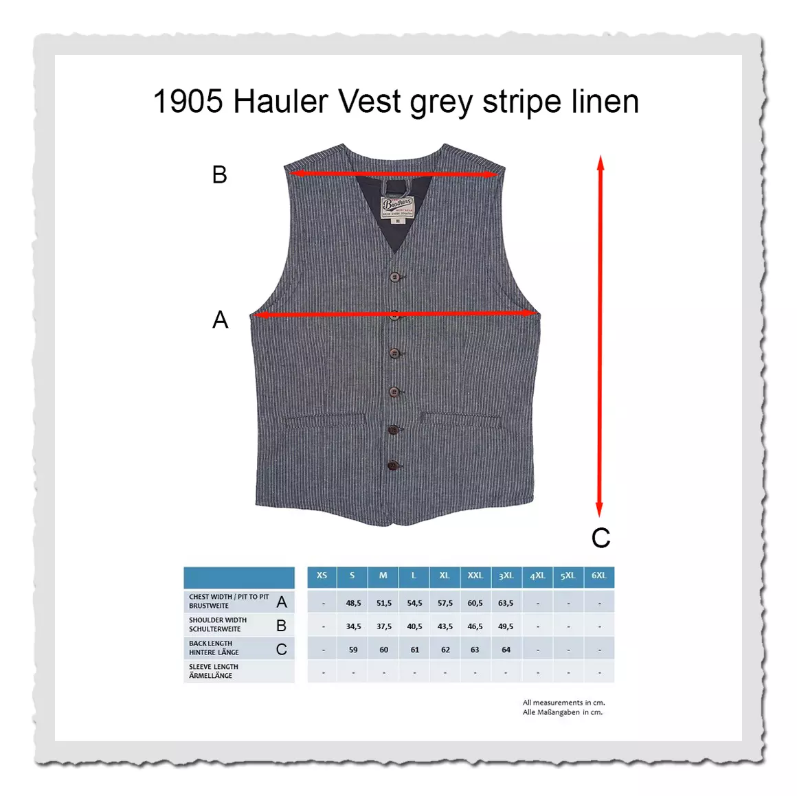 1905 Hauler Vest grey striped linen in einem leichten Sommerstoff, ideal für den Sommer.