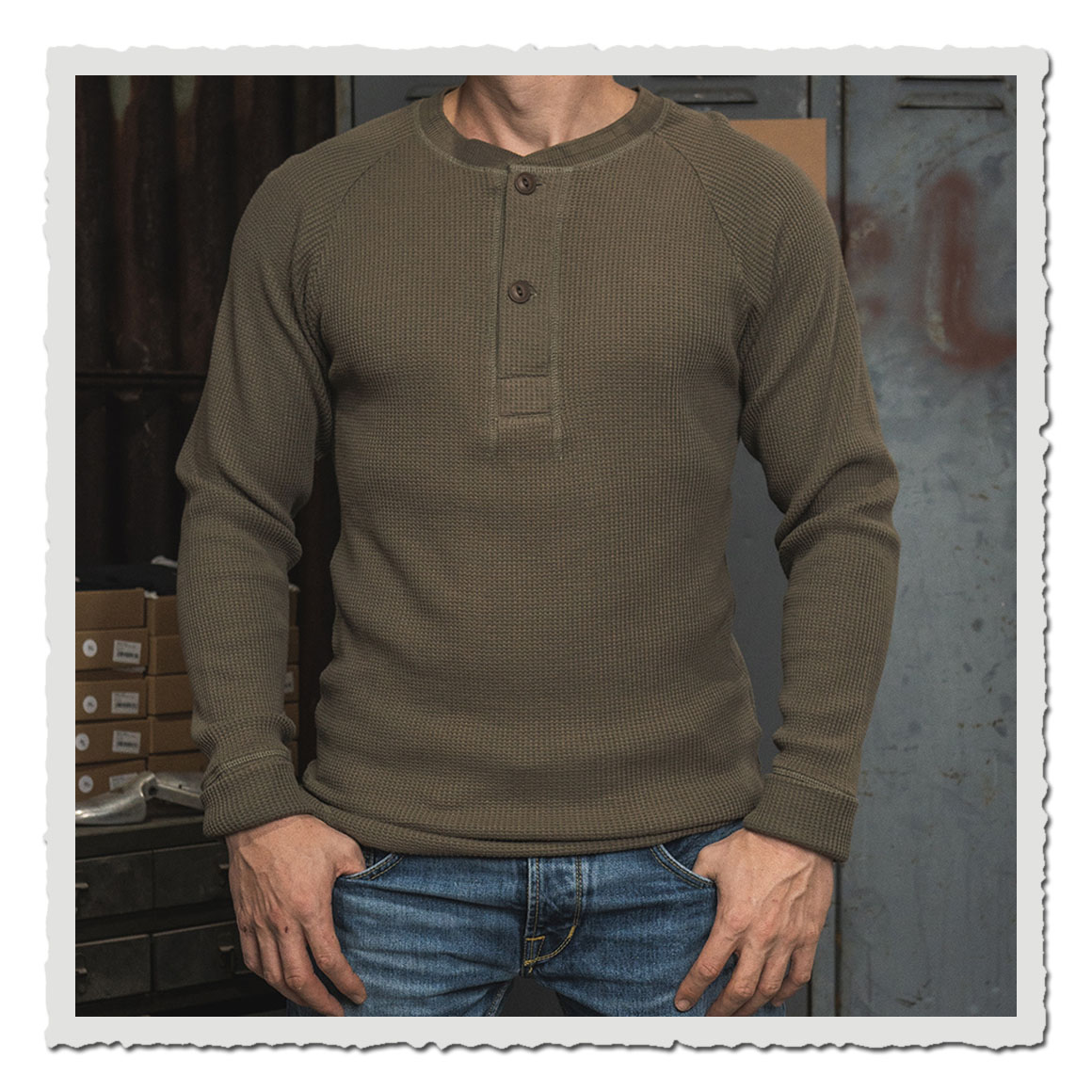 Das 1936 Waffle Shirt army von Pike Brothers ist ein Klassiker der Unterwäsche mit körpernahem Schnitt. Schweres Material mit weicher Oberflache und angenehmer Tragekomfort - eine unschlagbare Kombination.