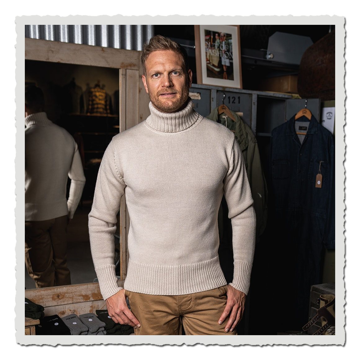 Der Klassiker-Pullover im authentischen Schnitt, wie er von den Piloten der Royal Air Force während der Luftschlacht um England getragen wurde.