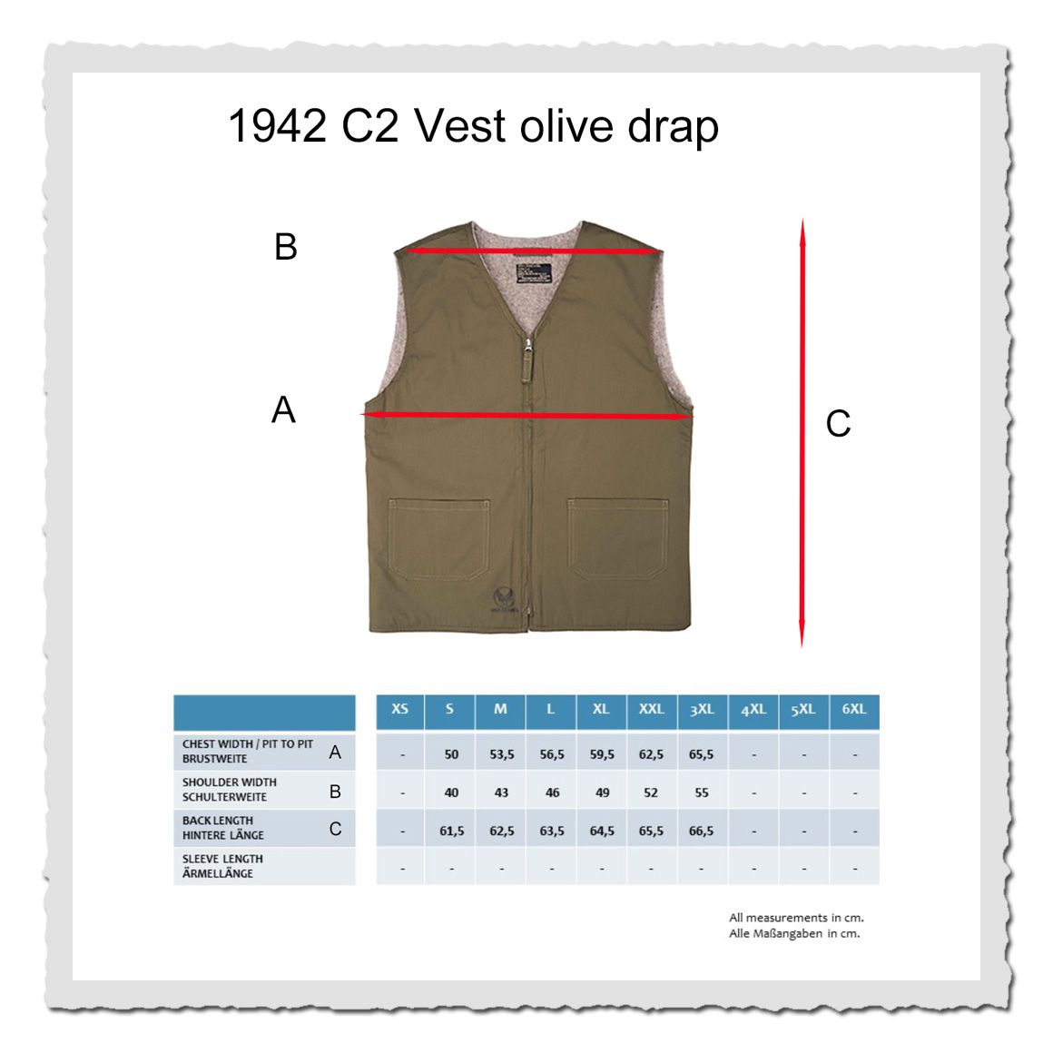 Maße "1942 C2 Vest olive drab"