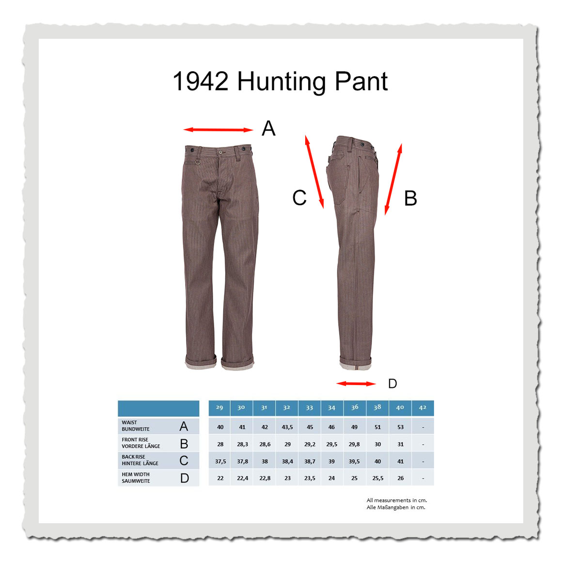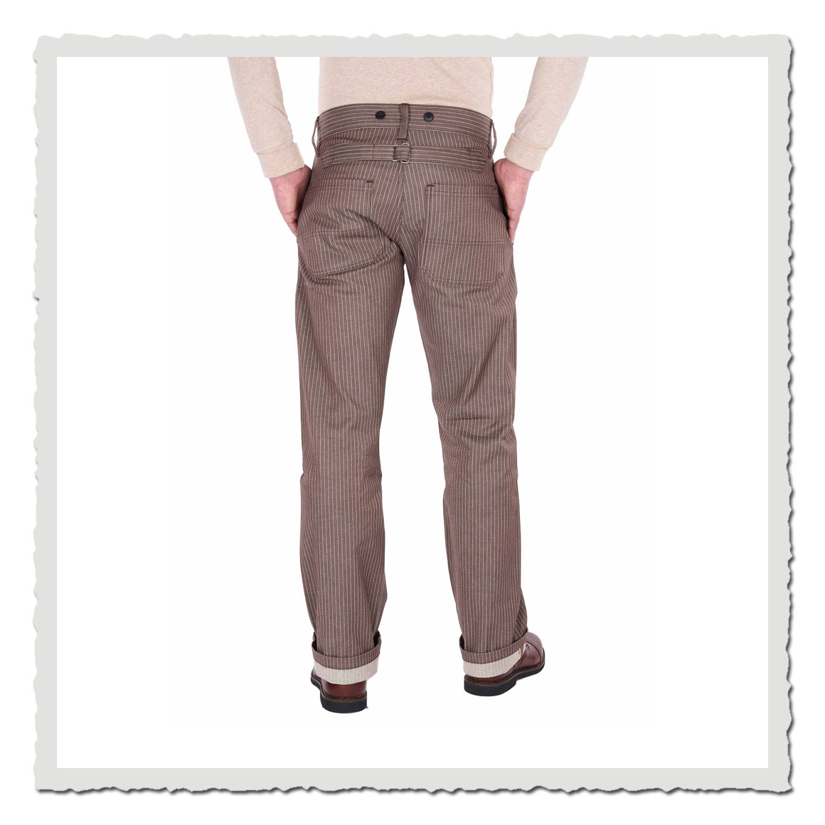 Die normale Passform zusammen mit dem Taillenriegel und den schweren Verriegelungen an den stark beanspruchten Stellen machen die 1942 Hunting Pant zu einem Gegenstand des täglichen Gebrauchs.